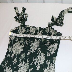 Abercrombie & Fitch Smocked Midi Dress Tie Straps Ruffle Green Floral Size S NWT