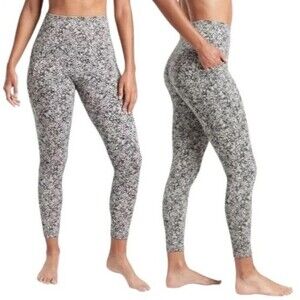 ATHLETA Moonflower Black/White Floral Salutation Stash Pocket II Textured 7/8 High Rise Tight Women's Size Petite Small
