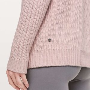 This chunky Cotton sweater is slightly oversized for easy layering and tightly knit with lofty yarn to keep cold air out. Chunky Cotton Knit A thick, cozy and breathable knit keeps you warm without overheating breathable warm Features Designed for: Office Travel Commute High neck: High neck helps keep you warm Fit : Body Skimming, hip length Colour: Misty Pink Size tag removed but fits like Lulu 8