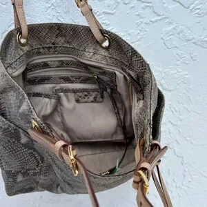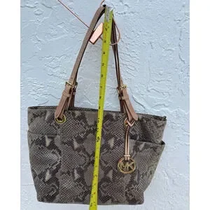 Michael Kors Womens Python Jet Exotic Travel Shoulder Bag Beige Size 15"x10"