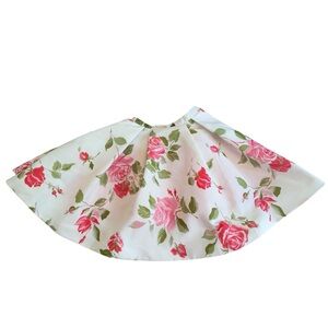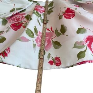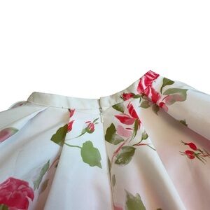Beautiful Sherri Hill fit-and-flare skirt in white with pink and red rose print. Structured pleats, back zipper, and soft sheen fabric. No size tag but measures approx Size 0 (waist 11.5”, length 18”). Excellent condition, skirt only — originally part of style 50563 ($450 retail).