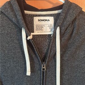 Classic Sonoma Goods for Life full zip hoodie in a soft charcoal gray. Features drawstring hood, front pockets, and ribbed cuffs and hem for a comfortable fit. Perfect for layering or casual everyday wear.