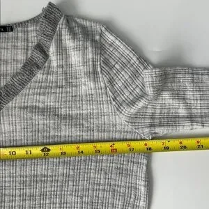 Stylish gray V-neck top with long sleeves. Perfect for casual wear.
