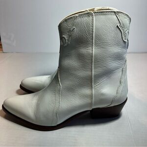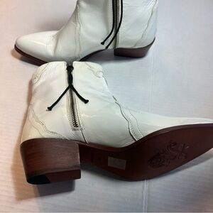 Free People New Frontier White Patent Leather Cowboy Boots W/Zip Sz 10/41- EUC