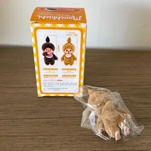 Adorable Monchhichi flocked monkey doll with a tan body and pink accents. Comes with original packaging.
