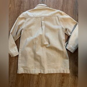 Amazing vintage piece from the 1980s-1990s. Oversized style shirt/jacket with authentic leather trim and gleaming gold hardware. Missing one button (see picture). Otherwise in mint condition.