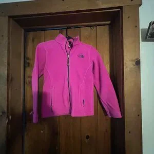 Girls size 10/12 North fleece jacket in a vibrant pink! This jacket is perfect for those chilly fall days! It’s in good condition, with little stain marks on sleeves that are barely noticeable. Zip closure and zipper on the pockets Size 10/12