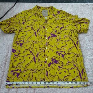OAS Viscose Button Up Shirt Ochre Purple Smiley Face Men's Shirt Size Large