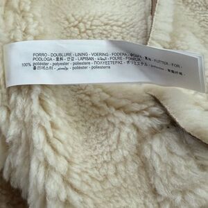 Zara Limited Edition taupe brown coated with a sheen, shearling lining with details on the sleeves hem and collar. NWOT M Leather buckles at collar, each side, and zipper close. Additonal dark brown leather stripe accent. Buckles wrapping not taken off, collar never been buckled. Boxy boho oversized fit. this is truly warm and cozy. Pristine