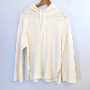 CALIA | Cashmere Blend Ribbed Knit Hooded Sweater Pullover in Cream | Small