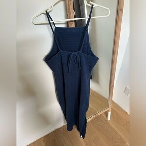 Step out in style with this elegant navy blue sleeveless dress. Perfect for any occasion, this dress offers a chic and comfortable fit.