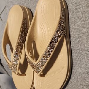 CROCS beige sandals with sparkling straps. Ideal for everyday wear.