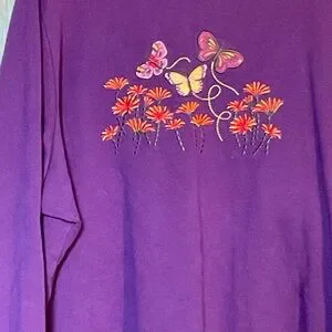 Basic Editions Rich Purple SweatShirt w/Butterflies. P2P 31-34. Size 3X. EUC