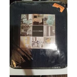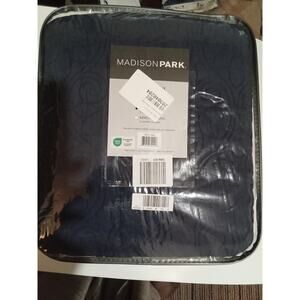 Madison Park Quebec Quilt Set - Luxurious Damask Stitching Design Navy 3 Piece