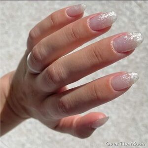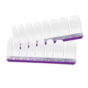 New in package Color Street nail strips. Retired “Over the Moon” is a clear satiny white glitter-dipped shade. Wear these clear nail art strips alone on bare nails or layer over your favorite nail color for a whole new look.