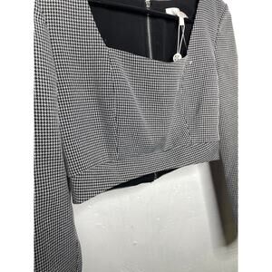 NEW WAYF Womens Houndstooth Cropped Long Sleeve Square Neck Size Small