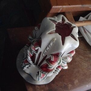 Enhance your home decor with this exquisite handcrafted decorative candle. Featuring a blend of red, green, and white hues, this piece adds a touch of elegance to any room. Perfect for creating a warm and inviting atmosphere.