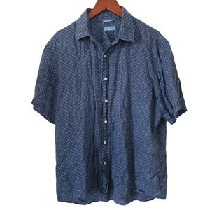 Aqua Toscana Patrick Assaraf Mens Polka Dot Chambray Shirt Linen Large