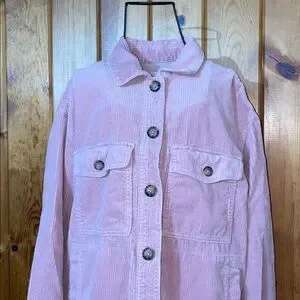 Chic blush corduroy jacket with buttons. Includes dual chest pockets.