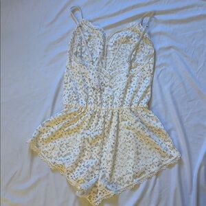 Victoria’s Secret size XS creamy coconut white lace romper teddy, fully unlined. Adjustable straps and elastic waist. Perfect for a bride to get ready for her wedding in! Gorgeous swimsuit cover for honeymoon resort wear. Vintage Y2K style