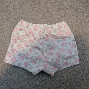 Adorable floral shorts with a pink pattern. Perfect for playful days.