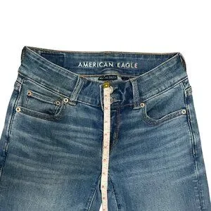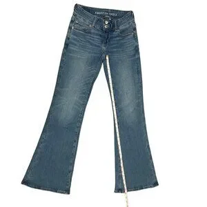 American Eagle Women’s Flare Jeans Blue Denim Stretch Mid Rise Classic Size 00