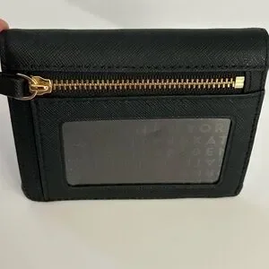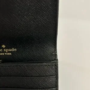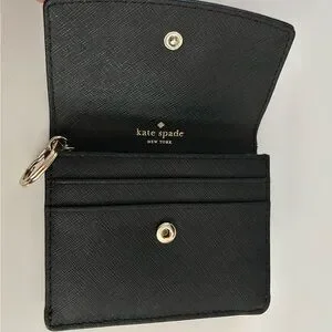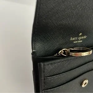 Kate Spade Black Small Card Holder Leather Wallet with Gold Accent