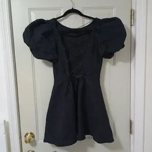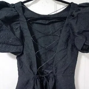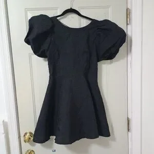 Simonett Beya Dress Black Size S Puff Sleeve Textured Fabricv Womens