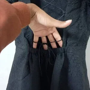 This Simonett Beya Dress features a sophisticated design with puff sleeves and a textured fabric, perfect for making a professional impression. The open back with crisscross detailing adds elegance, while the lining ensures comfort. It's suitable for formal events or professional settings, offering a blend of style and functionality.