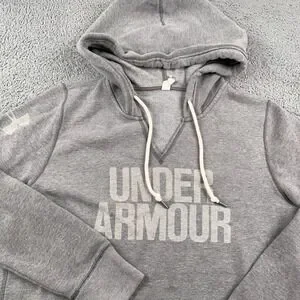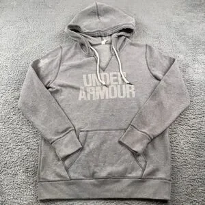 Under Armour Hoodie Womens Small Gray Sweatshirt Pullover Fleece Spell Out