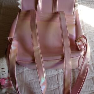 with card Wallet & compact mirror. Great condition!!! Worn out once. Feel free to ask any questions. measurements H 12" X L 13" X W 4" Adorable pink backpack featuring cute cartoon characters. Perfect for kids' daily adventures.