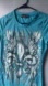 Sky blue tee with winged fleur-de-lis design. Short sleeves. Casual and trendy.