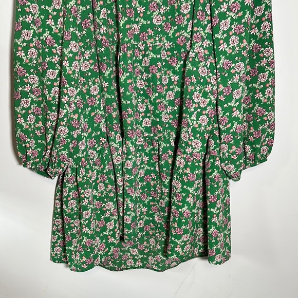 ASOS Long Sleeve Square Neck Pink Floral Green Dress Size 14