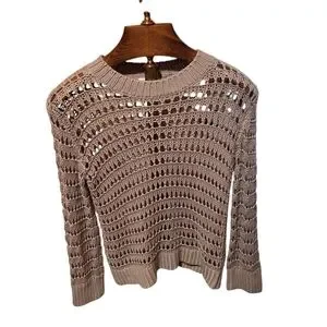 Sablyn Mariella Open Knit Cotton/Silk/Cashmere Blend Sweater Tan Sand Size XS Pre-owned Chest Measurement is 23"