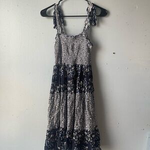 ** boho 🌼 Kings Road Navy Blue Floral Smocked Tiered Midi Dress | Size S**