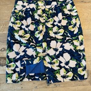 J Crew Women's Skirt Blue Beige Floral Cotton Pencil Knee Length B8203 BD19