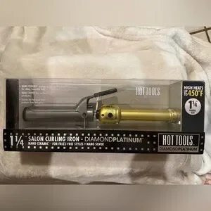 Hot Tools Diamond Platinum 1 1/4” salon Curling Iron Nano Ceramic, Gold, NEW