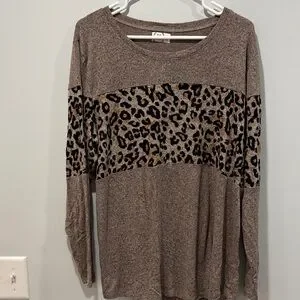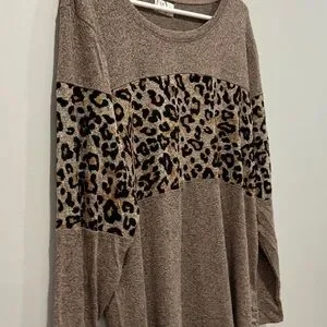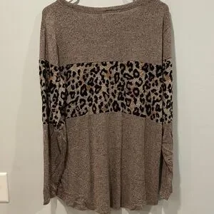 Chic sweatshirt with leopard print panel. Soft and comfortable. Ideal for casual wear.