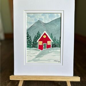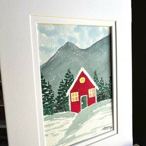 🎉SALE! Hand-Made New Watercolor Art Cozy Red Hut in the Mountains