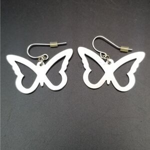 Silver brushed butterfly earrings simplistic classy jewelry. E0125