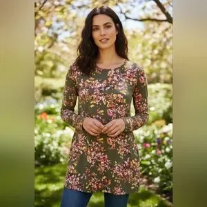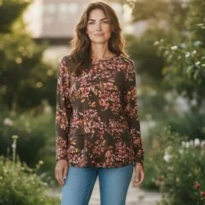 Embrace elegance with this floral print women's top. Perfect for any occasion, this top features a beautiful blend of colors that add a touch of sophistication to your wardrobe.