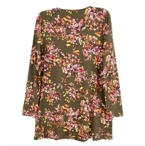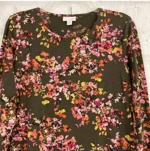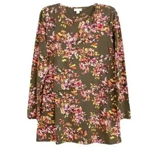 J. Jill Floral Watercolor Layered Tunic Top Size S Long Sleeve Cotton Blend WT53