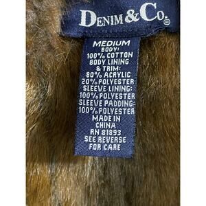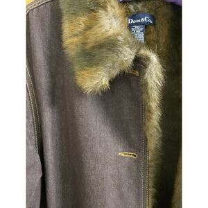 Denim & Co. 90’S Dark Denim & Faux Fur Trim Coat size Medium