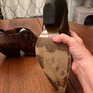 Stylish brown Western ankle boots with intricate stitching and floral details. Perfect for a chic, rustic look.