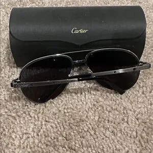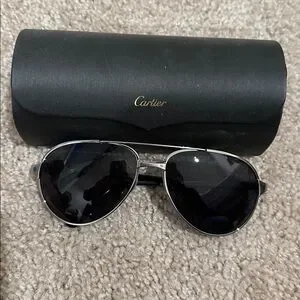 Cartier Silver and Black Aviator Sunglasses