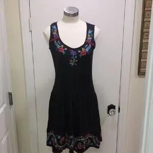 Vintage Johnny Was Tank Dress With Full Skirt And Embroidery. Size Small.
