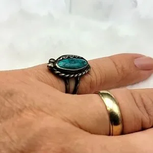 5g Vtg Native American Old Pawn Turquoise And Sterling Silver Size 7 Ladies Ring