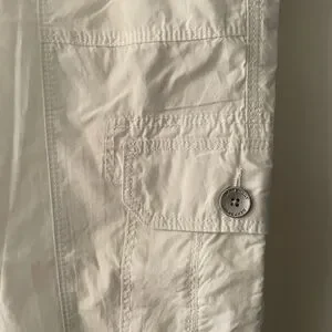 Chic white cargo pants with multiple pockets. Comfortable and stylish for everyday wear.