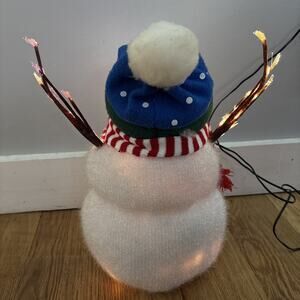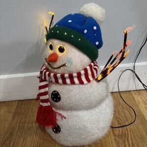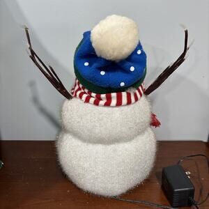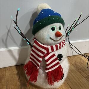 Fiber Optic Snowman Bradford Sight Sational 14" Striped Scarf Color Changing Box