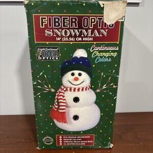 The Fiber Optic Snowman Bradford Sight Sational 14" Striped Scarf Color Changing Box is a unique holiday collectible item that is sure to add a festive touch to your Christmas decor. This product, manufactured by Bradford in 2001, features a multicolor striped scarf that changes colors when illuminated by its fiber optic lights. Made with mixed materials in China, this collectible item is a special addition to any holiday collection, perfect for adding a magical and whimsical touch to your seasonal display.